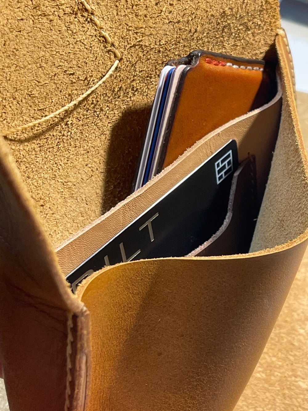 Featuring one internal divider and one card slot to store your essentials in such as cash, ID, credit card, and more. The pouch secures shut with a high-quality wrap-around waxed braided string over its envelope-shaped flap.